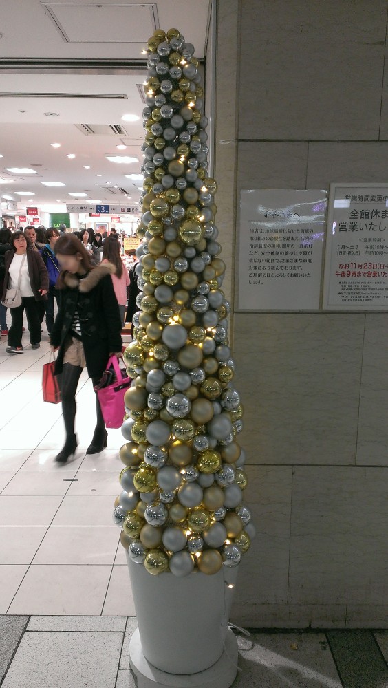 ブクロの喫煙所の前に、こんなデッカいツリーが設置されていました。