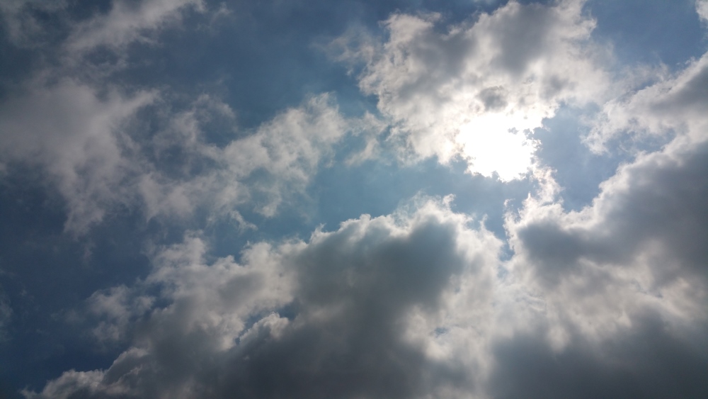 空は雲で覆われ、その隙間からかろうじて太陽の光が見えます。
