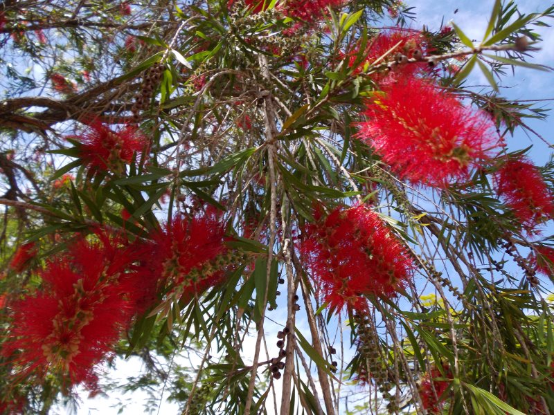 ココティエ広場は、フランボワイヤンの木々に囲まれるといいますが、今はむしろこちら、ブラシの木が盛りを迎えていました。