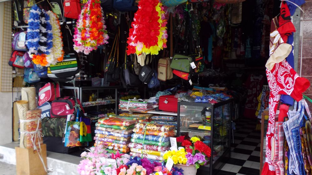 右は、一般的なお土産屋さんでもあり、メラネシアンなワンピースなどが多く扱われているところです。