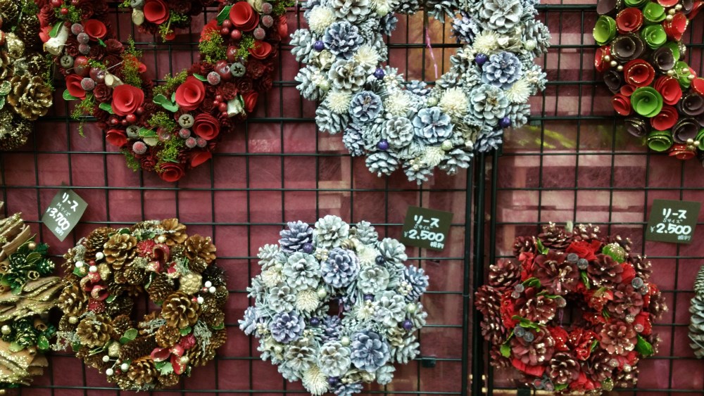 もうクリスマスリースが売られています。