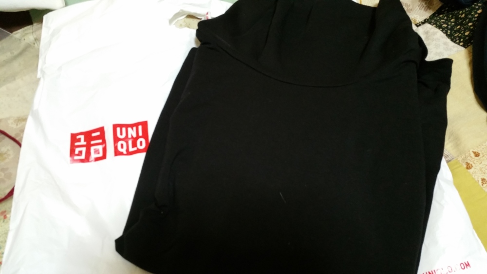 私の制服に合わせるヒートテック、クルーネックだとおかしいことに気づいたので、オフタートルにしようかな、と。