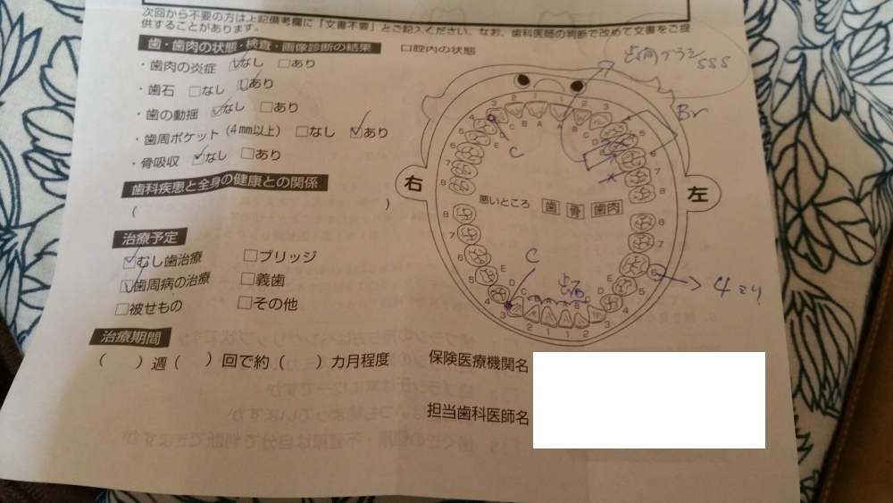 私、「歯周病治療」にチェックがついていますが、本当はまだ全然必要がなく、将来的には、ということです。