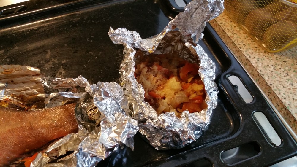 この時は、その中から1匹選び出してお腹の中にタマネギ、にんにく、ジンジャー、オニオンなどをミックスしたものを入れました。