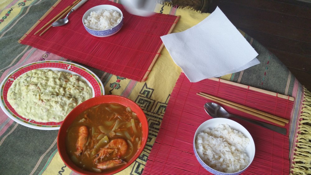 私は日本から幾つか食材を持って行っていたので、それを利用してオムライスもどきを作ったり・・・