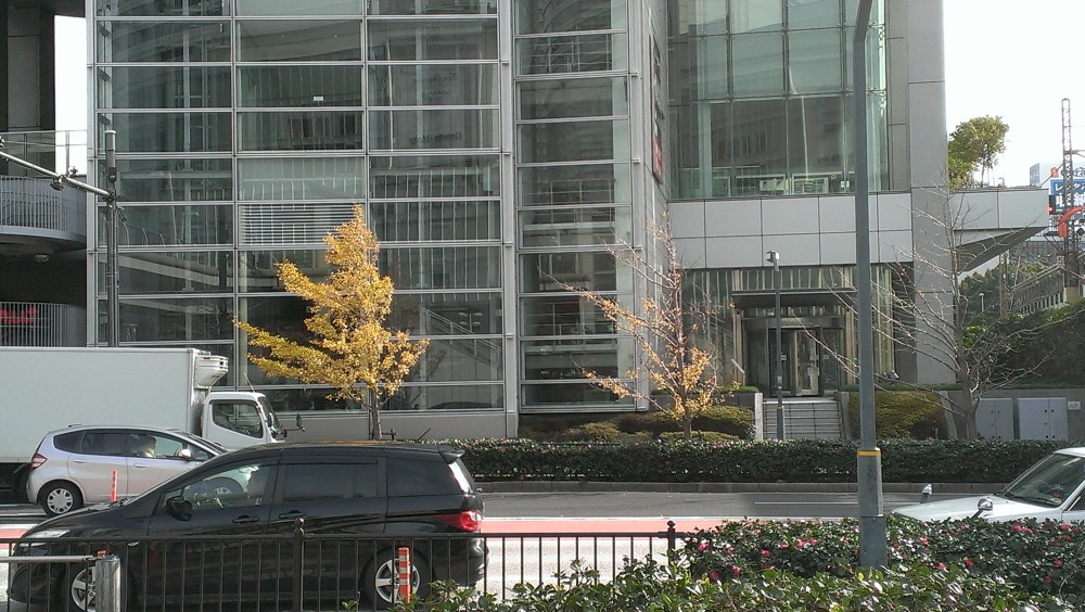 同じ場所に等間隔で並ぶイチョウの木。
