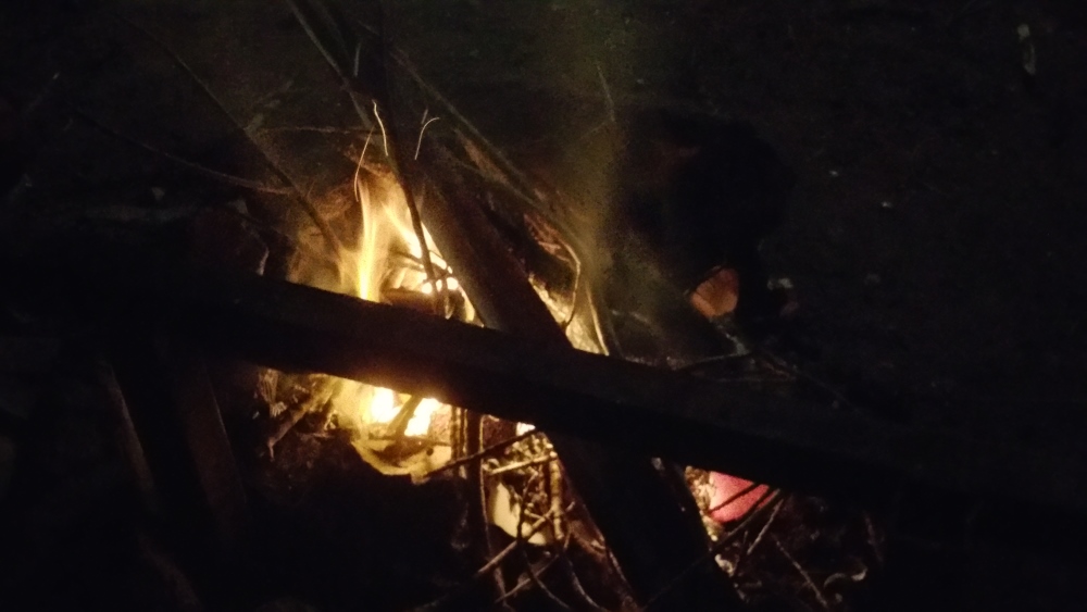 あちこちから蒔きを拾ってきて、キャンプファイヤーです。