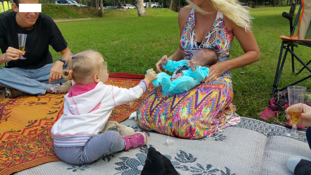 そこで、私たち一行は敷物を広げ、しばしドリンクなどを飲みながら遊ぶことにしました。