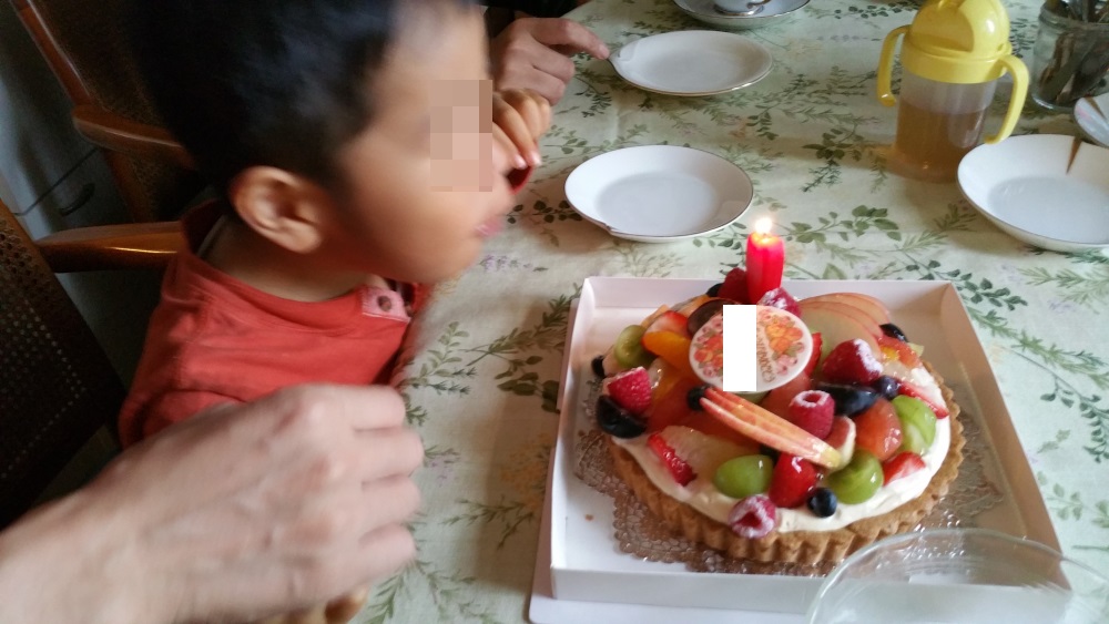 二人の息子で甥っ子3号、彼が一生懸命蝋燭を吹き消しました。