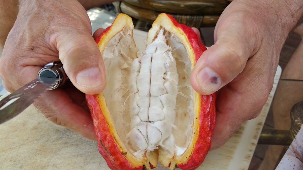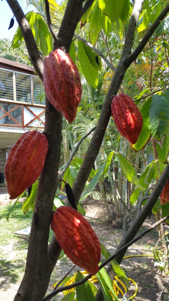 9月にここに来たときに初めてこの庭にカカオの木があると聞きました。