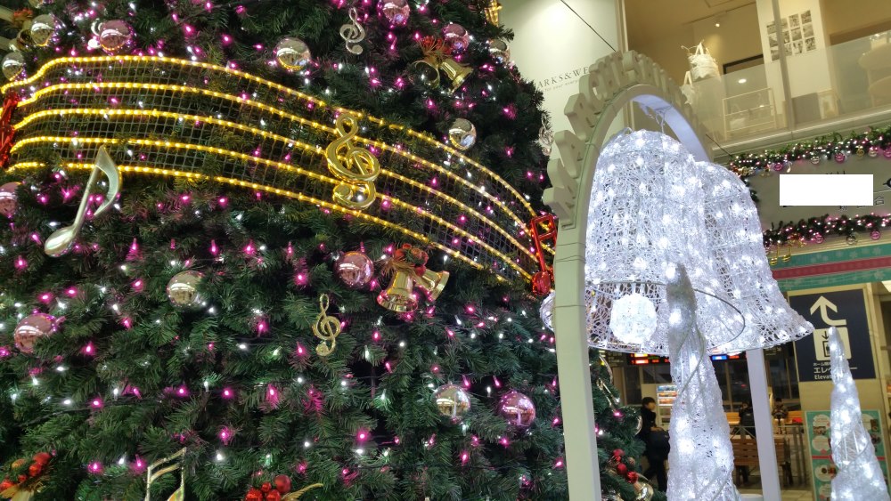 駅前にはクリスマスツリーが天井にまで達する大きさで聳え立っていました。
