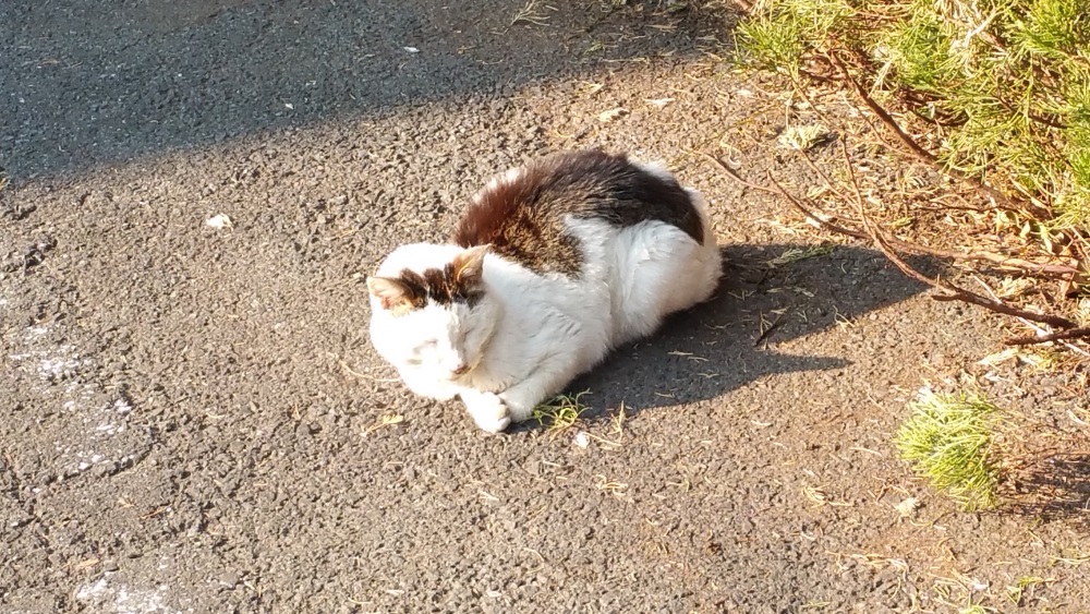 今では都心部では野良猫は少なくなったけど、いまだにこういう風にのんびりしている野良ちゃんがいる光景はなかなか良いものです。