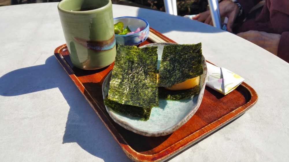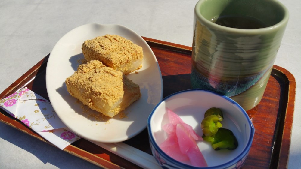 お昼ごはんらしいメニューはなかったのですが、あべかわ餅と磯辺餅、それに焼きおにぎりを両親と3人でシェアして食べることにしました。