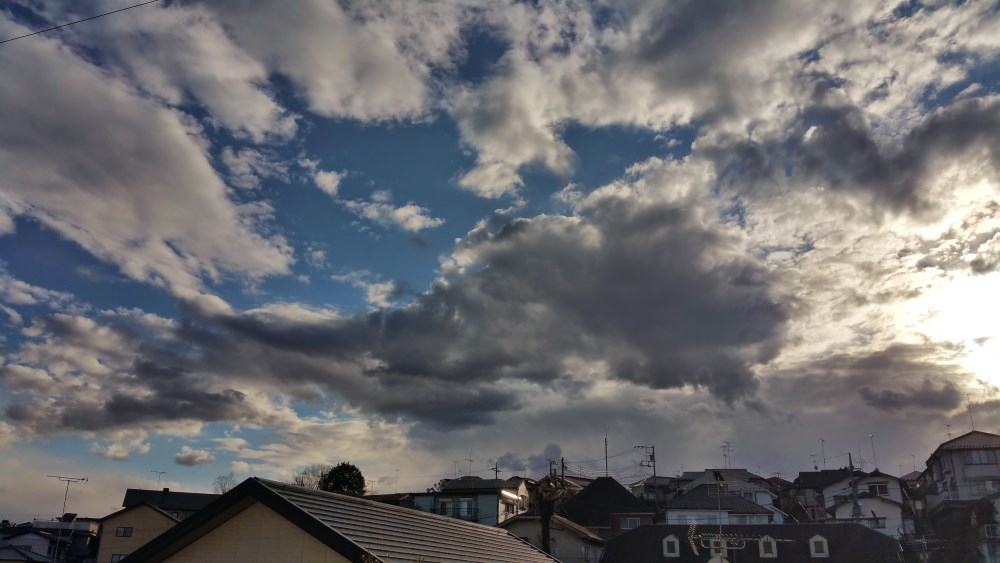 お昼くらいまでは、普通に雲のある空模様でしたが、そこに少し暗雲が混じってきていました。