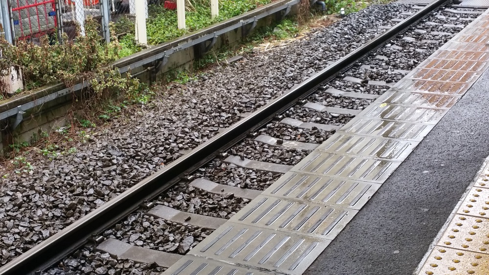 線路全体がぬれているのがわかりますか?