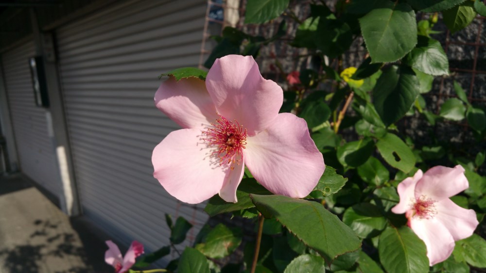 黄色の木香薔薇みたいなボリュームはなく、点々と咲いているのですが、実家の母が作ったアーチにきれいに咲いていました。