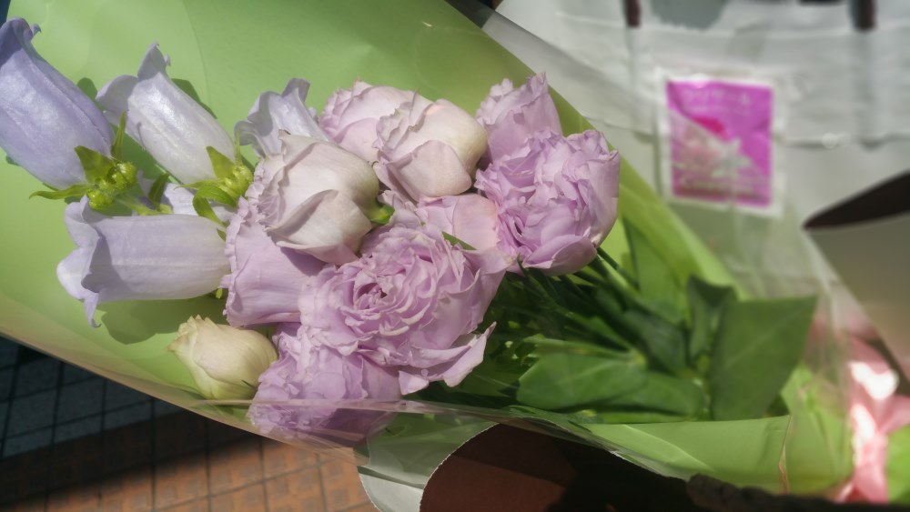 今年は私だけが花を買っていったのですが、これはカンパニュラとトルコキキョウです。