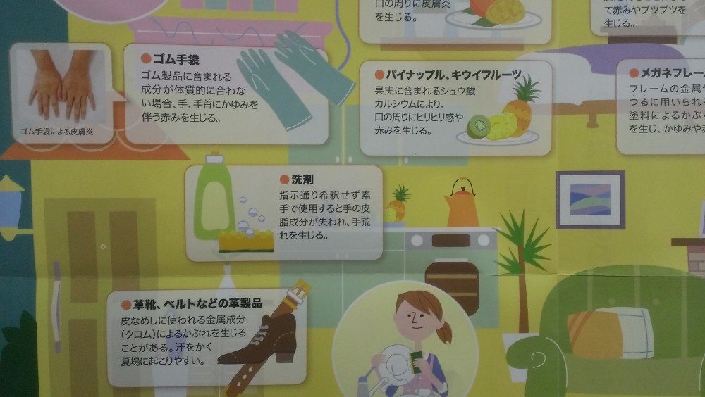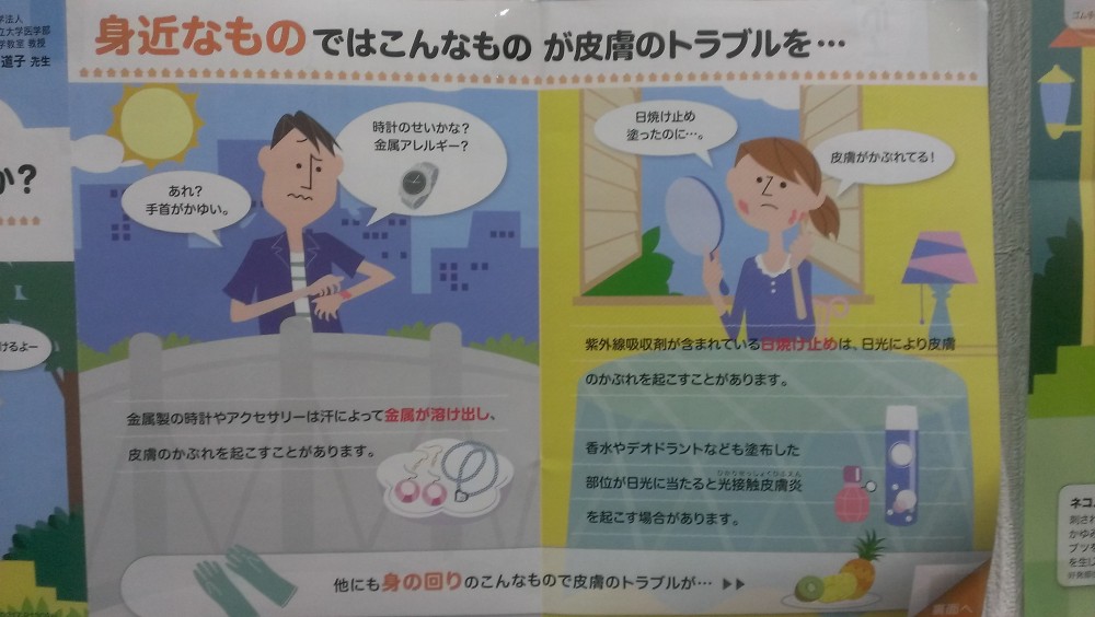 「身近なものではこんなものが皮膚のトラブルを・・・」と書かれた貼り紙を見てみる。